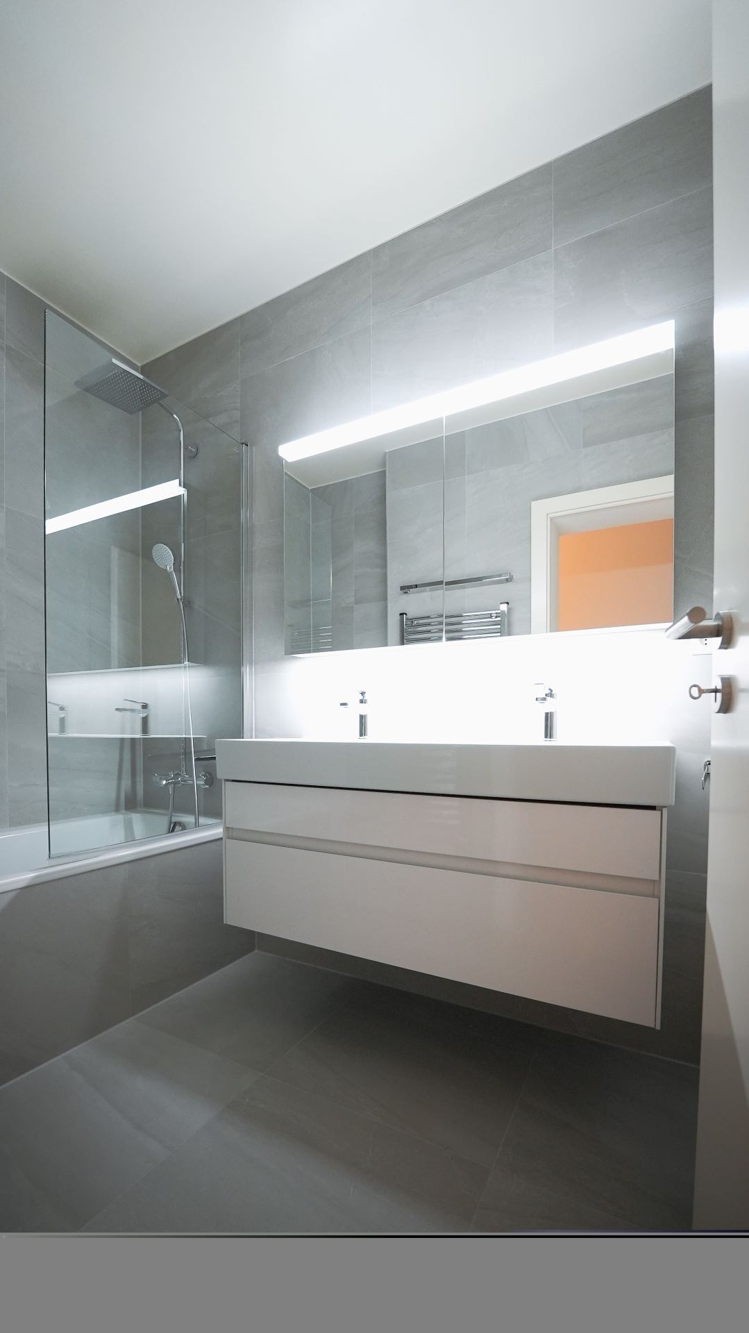 • Salle de bains : grande baignoire, lavabo double vasque.