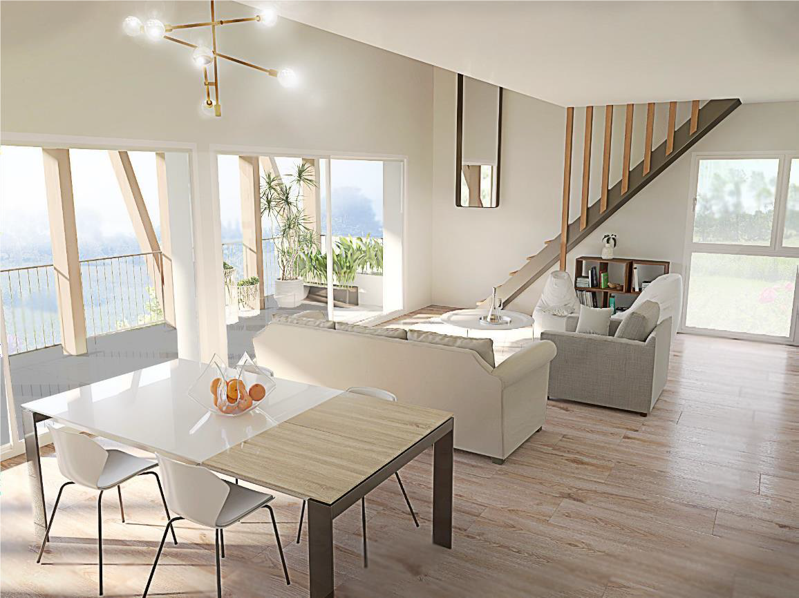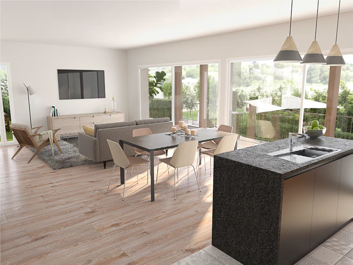 • Un vaste Salon avec une Cuisine Agencée : Le salon, baigné de lumière naturelle, se marie harmonieusement à une cuisine agencée moderne, créant un espace convivial.