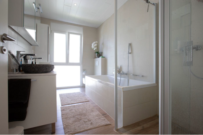 Une salle de bain raffinée avec baignoire et douche vous offrira tout le confort nécessaire au bien-être.